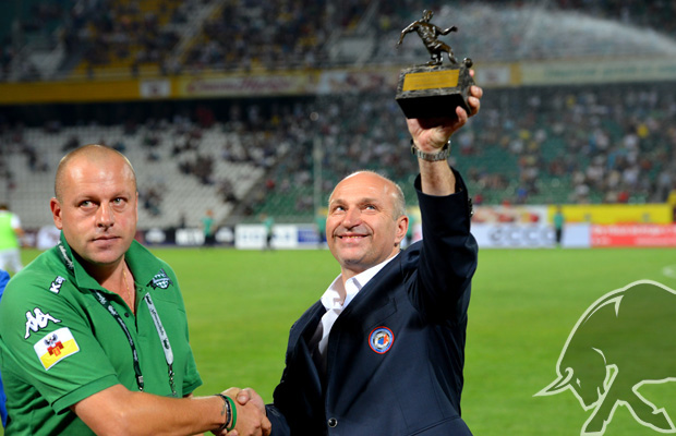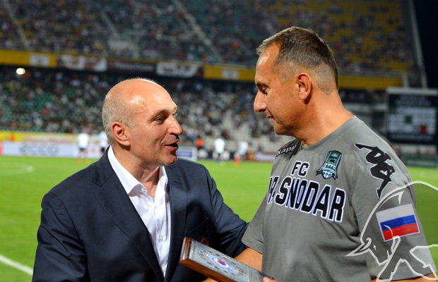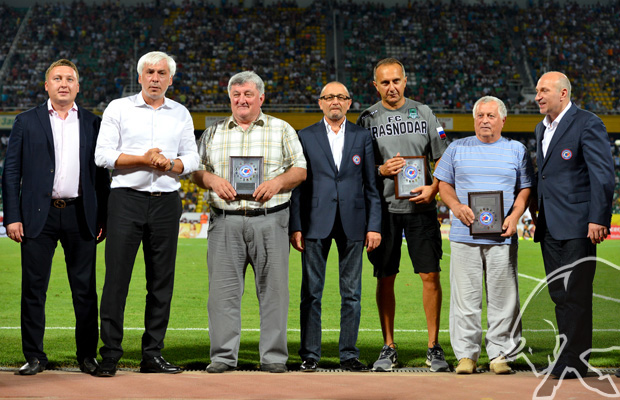 В перерыве матча со «Спартаком» ФК «Краснодар» руководителями РФПЛ были вручены два переходящих трофея отечественного футбола по итогам прошлого сезона.