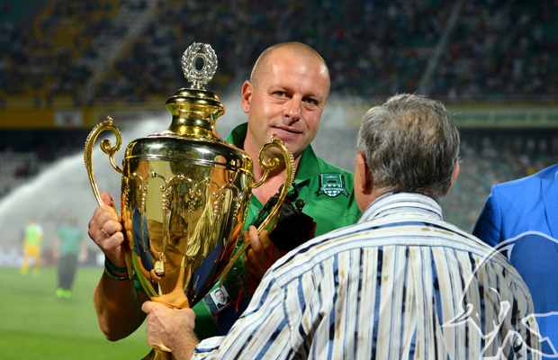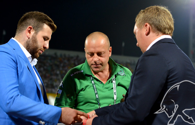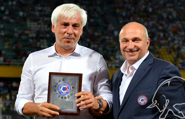 Переходящий приз «Вместе с командой» газеты МВД России «Щит и меч» коллективу ФК «Краснодар» в лице помощника генерального директора по работе с болельщиками Александра Луценко вручил спортивный обозреватель газеты «Щит и меч», заслуженный работник физической культуры Российской Федерации Виктор Асаулов.